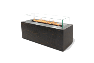 W wersji Laurent konstrukcja paleniska pokryta ostała spiekiem ceramicznym z płyty Dekton, odpornej na plamienie i zarysowania.