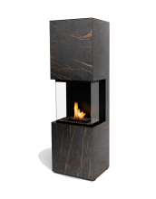 W wersji Laurent konstrukcja paleniska pokryta ostała spiekiem ceramicznym z płyty Dekton, odpornej na plamienie i zarysowania.